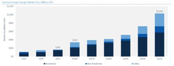 按照GTM Research泄漏,2016-2021年,德國儲能市場年收益無望到達10.3億美圓。